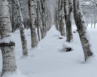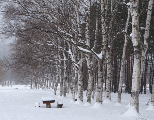 【みんなの広場】シラカンバ並木 積雪量がだんだんと増してきました。