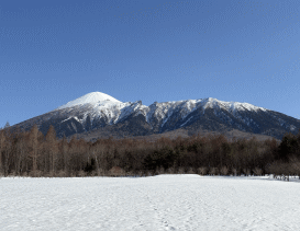【みんなの広場】県民の森はまだ雪景色。晴れた日には残雪の岩手山が美しく望めます。