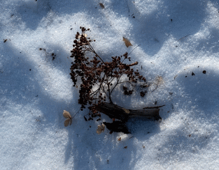 雪上に落ちたツルアジサイのドライフラワー。